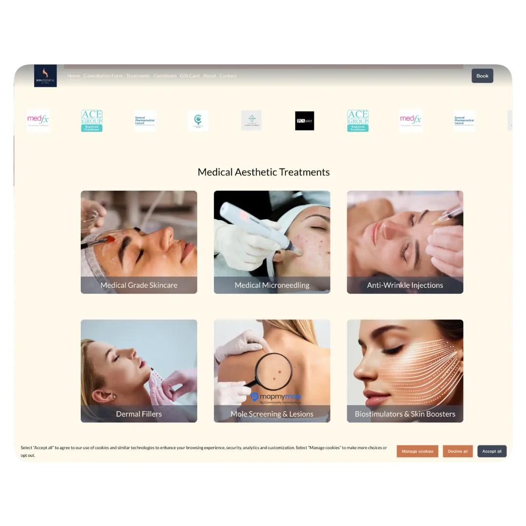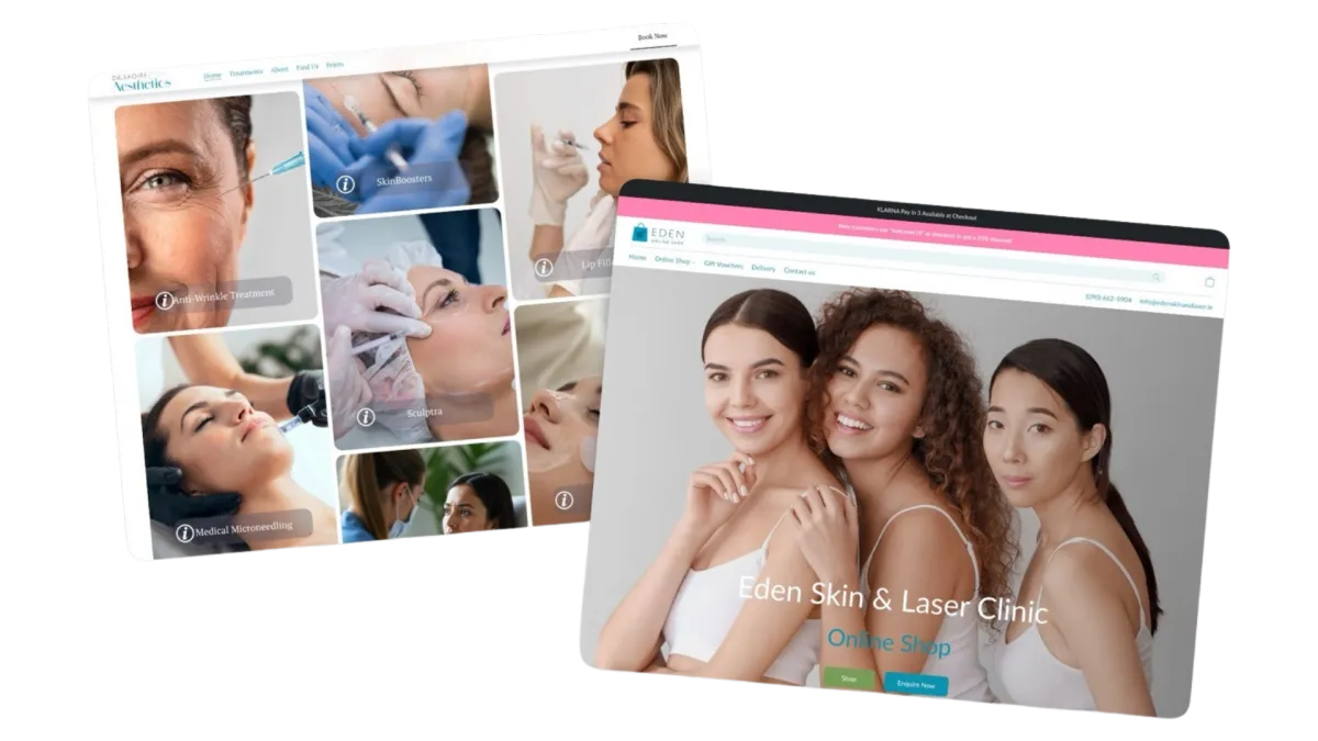 Ready-made treatment pages, clinic copy, and e-commerce tools so you don’t have to start from scratch.